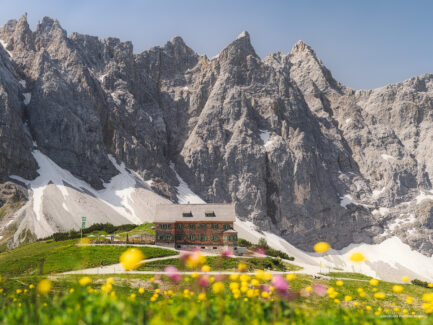 Die Falkenhütte im Karwendel mit vielen Blumen