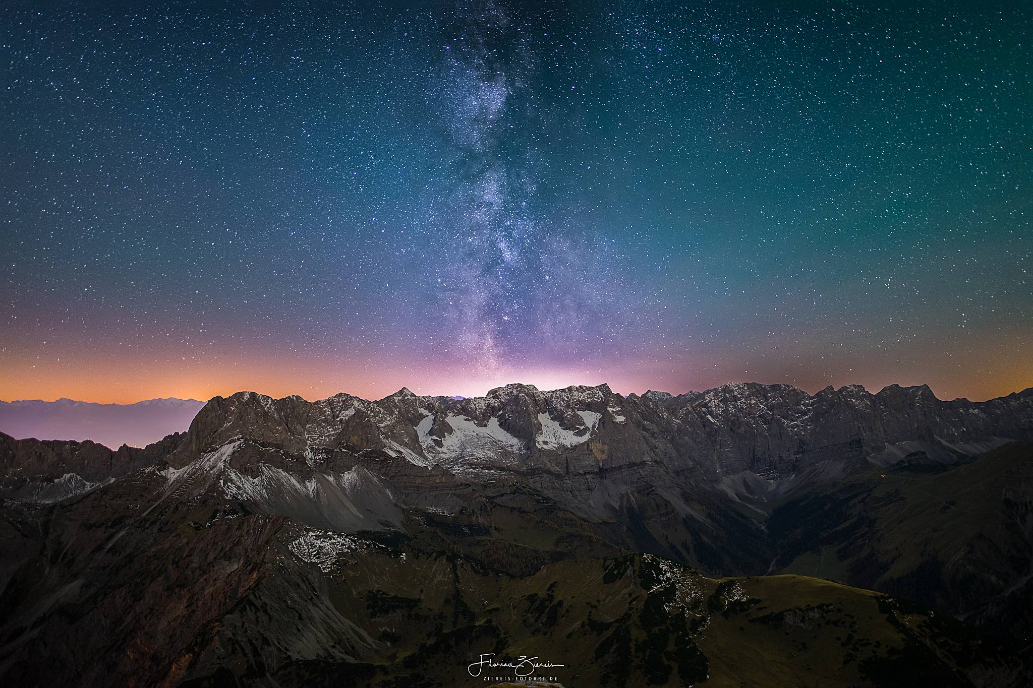 Milchstraße über dem Stubaital bei Vollmond